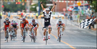 - Miguel Agreda Rojas (Garneau-Club Chaussures) gets a jump on the 4 Rocky Mountain-Desjardins riders present in the break and wins.